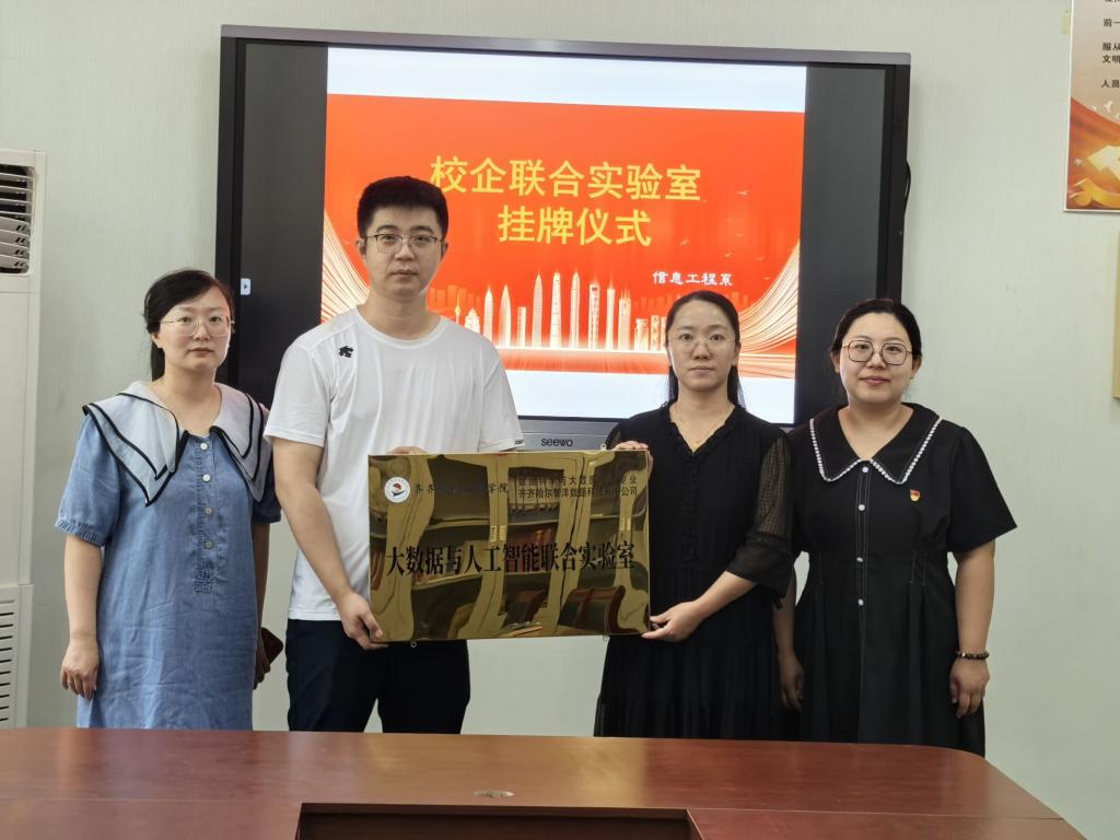 为了提高学生的实践能力和职业素养、增强就业竞争力,培养学生创新精神及创业合作意识,让学生能够深入“数据”一线完成专业实践培养工作,并助力企业数字化运营。7月31日,齐齐哈尔智洋数据科技有限公司总经理王热莅临我校,与信息工程系共建大数据与人工智能联合实验室,信息工程系负责人刘春媛、数据科学与大数据技术专业长高敏、专业教师朱琳共同出席挂牌仪式。
