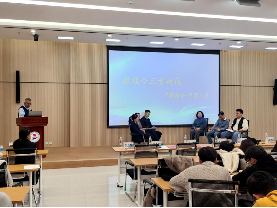 在曹竞时主持的高峰论坛环节,政府、学校、企业三方代表围绕产教融合中的关键问题展开深度对话。嘉宾们结合各自领域实践,就协同育人机制、课程内容与产业需求对接、实践平台共建等议题畅所欲言、交流见解,为下一步合作提供了清晰可行的路径。