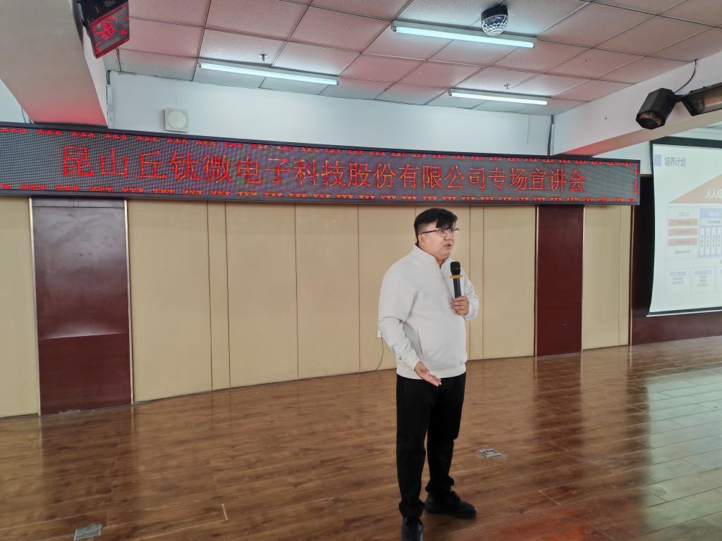 为进一步深化产教融合,精准契合智能制造产业的人才需求,助力新质生产力领域的人才培养,3月17日下午,昆山丘钛微电子科技股份有限公司走进齐齐哈尔工程学院信息学院,在图书馆501报告厅举办“电码双芯实验班”专场宣讲会。信息学院党委书记、集成电路设计与集成系统专业负责人李野,数据科学与大数据技术专业负责人高敏,电子科学与技术专业负责人关娜,企业校企合作部经理王金超出席活动,集电、电科、大数据、计科等专业辅导员及学生共同参会。