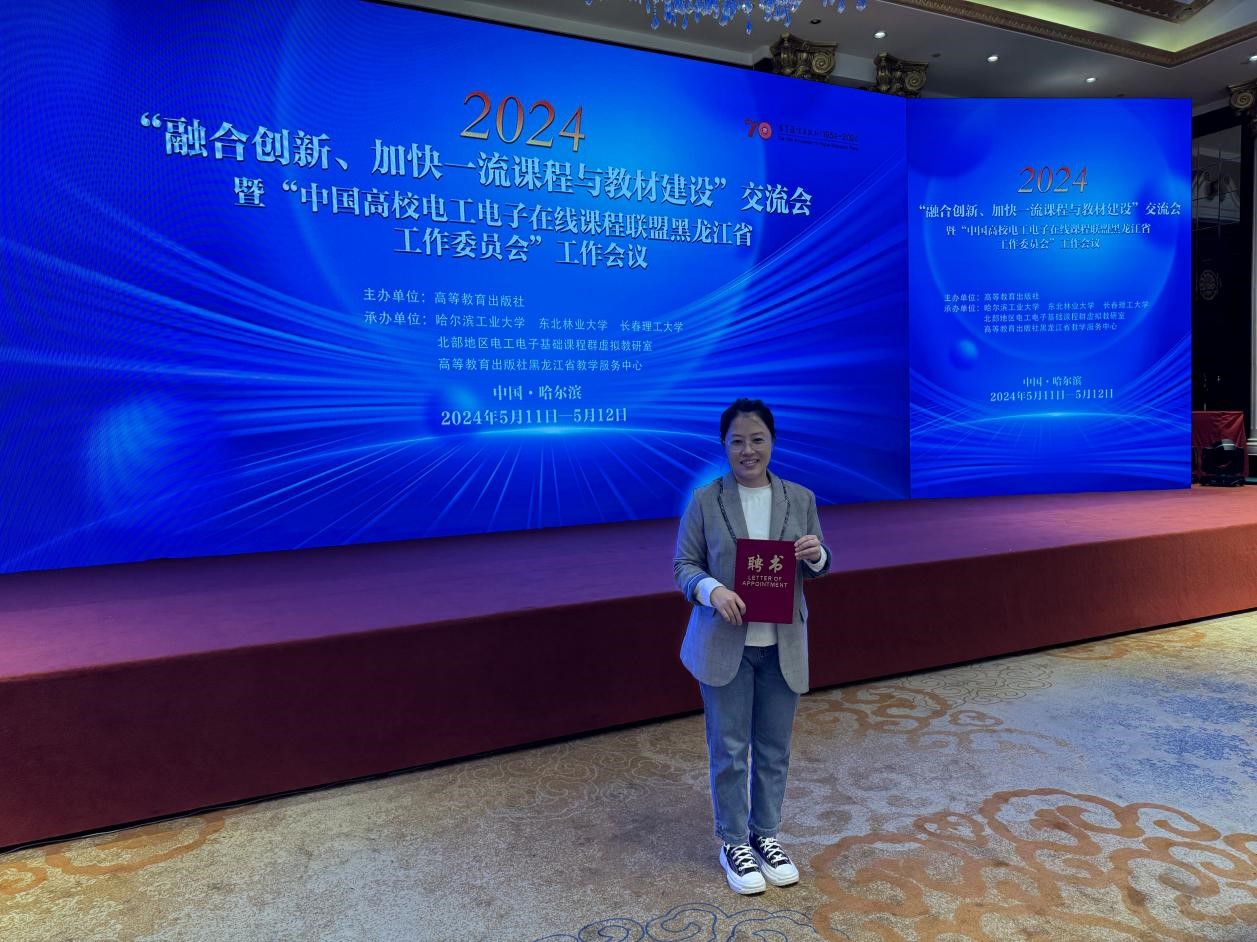 为贯彻2024年全国教育工作会议精神,深入推进教育数字化战略行动。5月12日,电子科学与技术专业教师关娜参加了由高等教育出版社主办,哈尔滨工业大学、东北林业大学、长春理工大学、“北部地区电工电子基础课程群虚拟教研室”、高等教育出版社黑龙江省教学服务中心承办的2024年“融合创新、加快一流课程与教材建设”交流会(哈尔滨)暨“中国高校电工电子在线课程联盟黑龙江省工作委员会”工作会议。